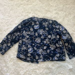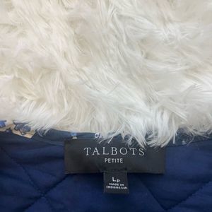 Talbots Blue Navy and Cream Quilted Button up Cardigan / Jacket Size L Petite