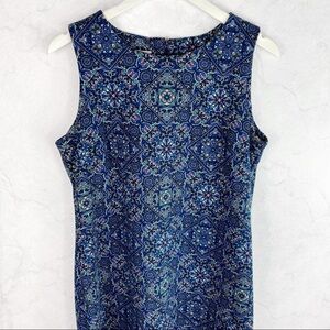 Talbots Classic Sleeveless Paisley Floral Blue Shift Printed Dress. Hidden Back Zipper. Stretchy. Cute & Comfy. No Stains or Rips.