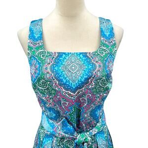 Talbots Blue Paisley Print Belted Sleeveless Fit & Flare Midi Dress Maximalist