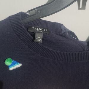 Keywords: Talbots, Blue Party Winter Hat Sweater, Size Large Petite, Festive Casual, Used
