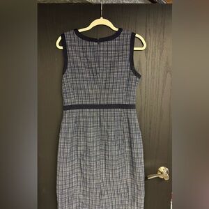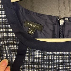 Elevate your work wardrobe with this Talbots sheath dress, featuring a sophisticated blue and checkered pattern. The sleeveless halter neckline and midi length offer a modern touch, while the structured design ensures a polished look for any professional setting.