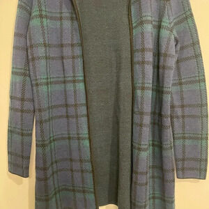 Talbots Blue Plaid Merino Wool Open Front Blazer Cardigan