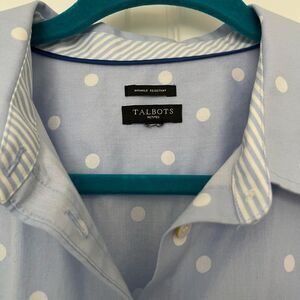Talbots Blue Polka Dot Wrinkle Resistant Cotton Button Down Shirt Size Medium