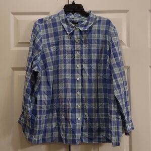 Talbots Blue Print Plaid Long Sleeve Button Down Women's Casual Shirt Size 3XP