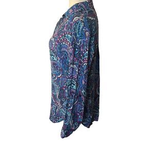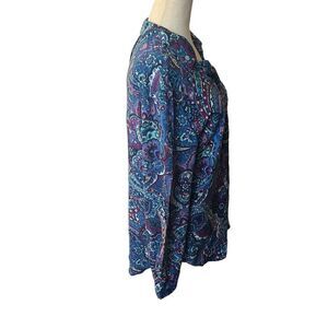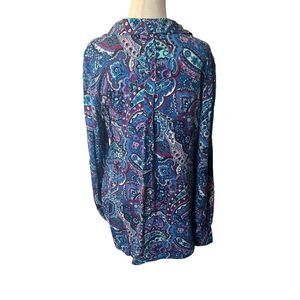 Talbots Blue + Purple Paisley Long Sleeve Button Front Blouse Medium