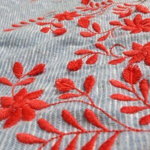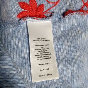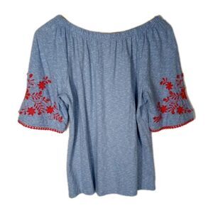 Talbots Blue Red Embroidered Peasant Top Size M P Boho 100% Jersey Cotton Floral