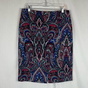 Talbots Blue Red Paisley Print OfficeCore Career Pencil Skirt NWOT Size 10