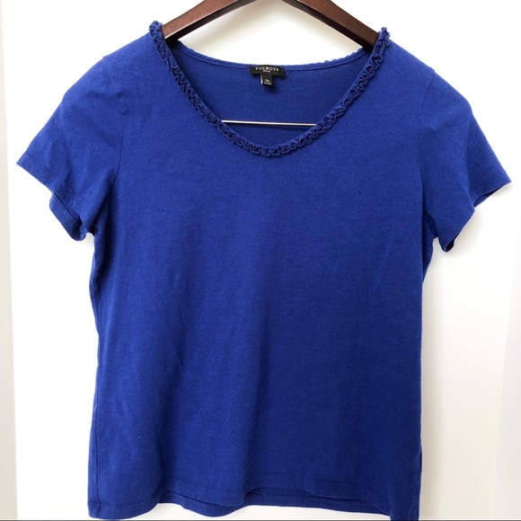 Talbots Blue Ruffle Neck Tee • Size MP