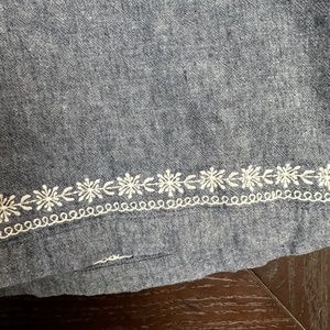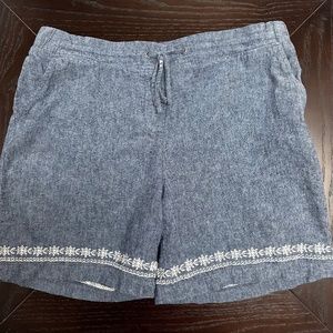 Stylish blue shorts with elegant white floral embroidery. Comfortable fit. Perfect for casual outings.