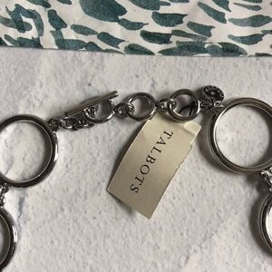 Large circle chain necklace with 3 blue stones in the center from Talbots. New with tags. Please see photos.