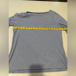 Elevate your wardrobe with this stylish blue striped top. Perfect for any occasion, this top offers both comfort and elegance. EUC Cotton Blend