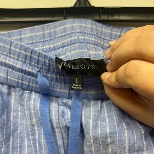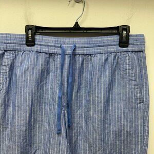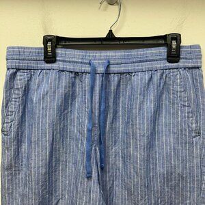 Talbots Blue Striped Linen-Cotton Drawstring Capri Pants L