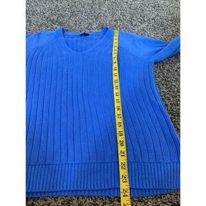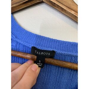 Talbots Blue Tan Ribbed V Neck Sweater Womens Sz S Soft Stretchy