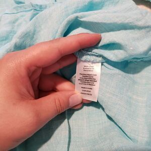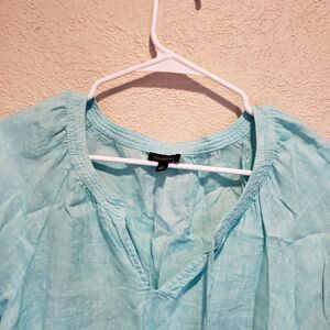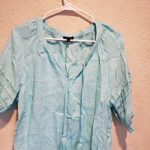 Talbots Blue Tassel Tie Neck Short Sleeve Linen Blouse Large