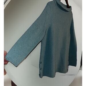 Talbots Blue Teal Bubble Jacquard Quilted Turtle Neck Pullover Waffle Knit XL
