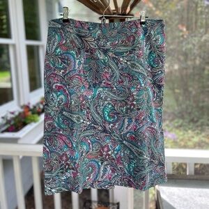 Talbots Blue Tourqoise & pink Paisley Pencil Skirt, size 12