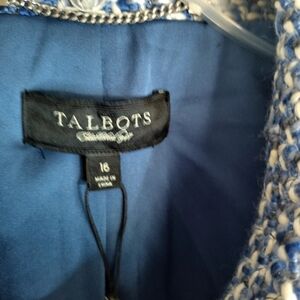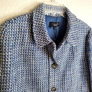 Talbots Blue Tweed Jacket Blazer Coat White Gray Lined Winter Fall sz 16