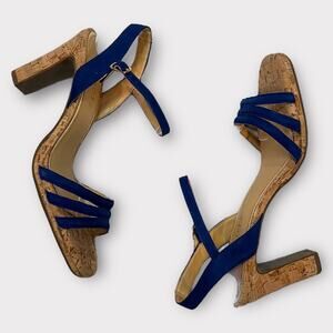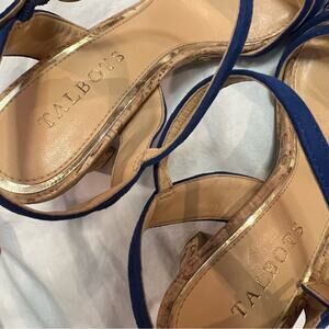 Talbots Blue Velvet Strappy Cork Heeled Sandal sz 7