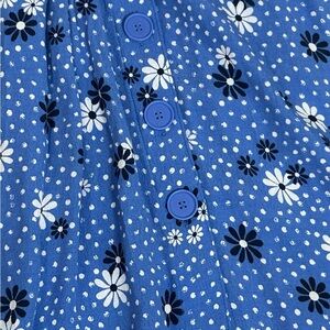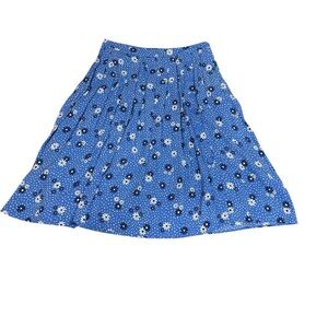 Talbots Blue Wave Daisy Dot Pleated Midi Skirt, Size 10 Viscose Pockets