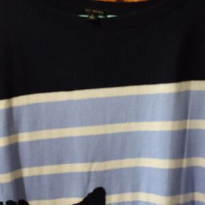 Talbots is known for classic, polished pieces that blend timeless style with subtle whimsy. This blue and white knit pullover features a playful turtle graphic, offering a fun yet sophisticated update to your office or casual wardrobe. Comfortable and versatile, it’s a perfect addition to any layered look or relaxed outfit.