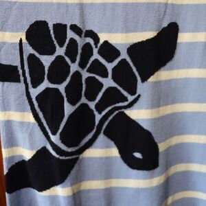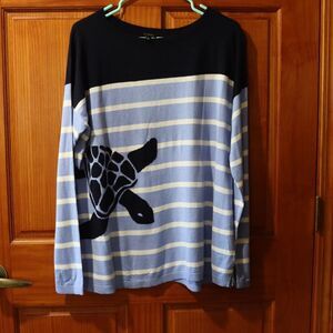 Talbots Blue & White Knit Turtle Graphic Pullover Sweater LG
