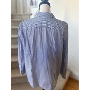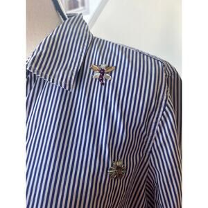 Excellent condition. Blue & white pinstripe, with rhinestone bees and dragonflies, and mini flowers. Collared button down, long sleeves.