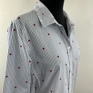 Talbots Blue White Red Top Cotton Striped Heart Collared Button-Up Size Small S