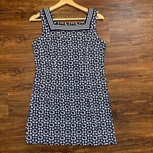 Talbots Blue White Square Yoke Neck Nylon Stretch Dress SP PS Small Petite