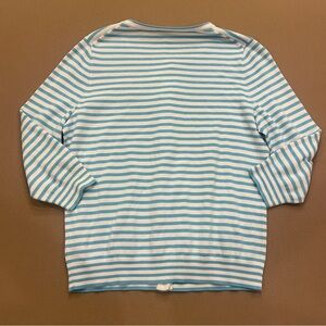 Talbots Blue & White Stripe Cardigan With Embroidered Floral & Flamingo Size MP