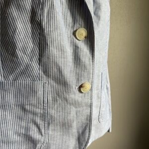 Talbots Blue White Stripe Linen Blend Lightweight Blazer Women 8 Academia Career