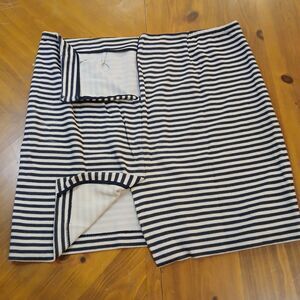 Talbots Blue White Striped Skirt 16W Zippered Back Slit Womens