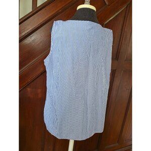 Talbots Blue & White Striped Sleeveless Ruffle Top Large
