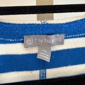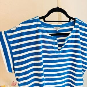 Talbots Blue & White Striped Terrycloth Short Sleeve Top Drawstring Hem, XL