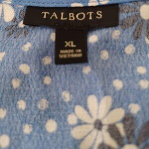 Talbots Blue Wrap Blouse Floral Polka Dot Boho XL Long Sleeve Tie Waist V-Neck
