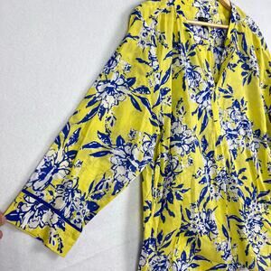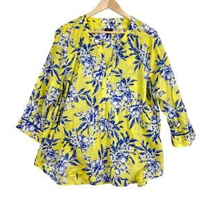 Talbots Blue Yellow Floral Artsy V-Neck 3/4 Sleeve Lightweight Boho Top Women 2X