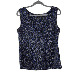 Talbots Blue and Black Sleeveless Blouse Size Small Black and Blue Print Top