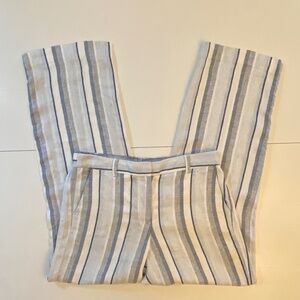 Talbots Blue and Cream Striped 100% Linen Wide Leg Pants Size 6