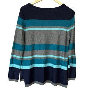 Talbots Blue and Gray Striped Rayon Sweater Sz M Petite