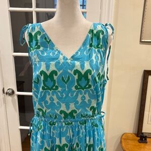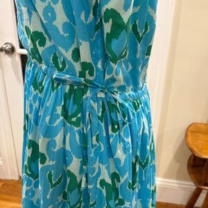 Talbots Blue and Green Patterned Women's Sleeveless Maxi Dress. Size 14