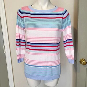 Talbots Blue and Pink(Pastel) Striped Three Quarter Sleeve Sweater(S)