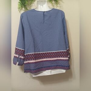 Talbots Blue and Red Boxy Blouse with Embroidery