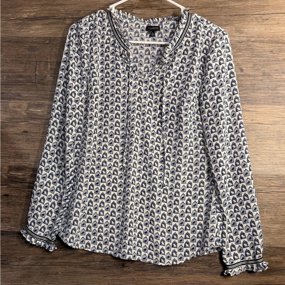 Talbots Blue and White Bird Cage Blouse