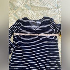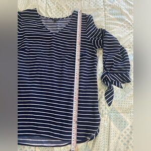 Talbots Blue and White Tie Front 3/4 Sleeve Blouse