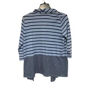 Talbots Blue/Navy Stripe Open Waterfall Lightweight Shawl Collar Cardigan Size M