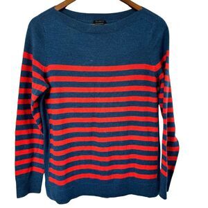 Talbots Boat Neck Blue Orange Striped Merino Wool Sweater Academia Size Medium