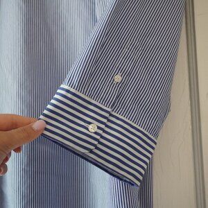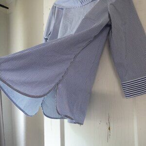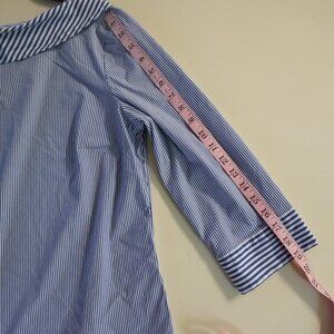 Talbots Boat Neck Collared Blouse Striped 3/4 Sleeve