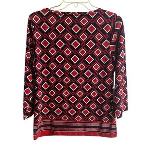 Talbots Boat Neck Top Abstract Print 3/4 Sleeves Medium