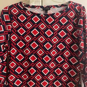 Talbots boat neck top in excellent condition featuring an abstract print and three-quarter sleeves.