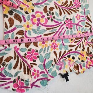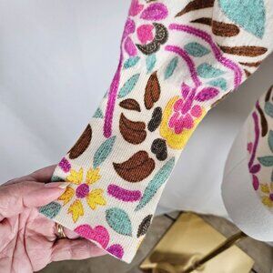 Talbots Boho Floral Merino Wool Puff Sleeve Sweater Medium Pink Blue Colorful