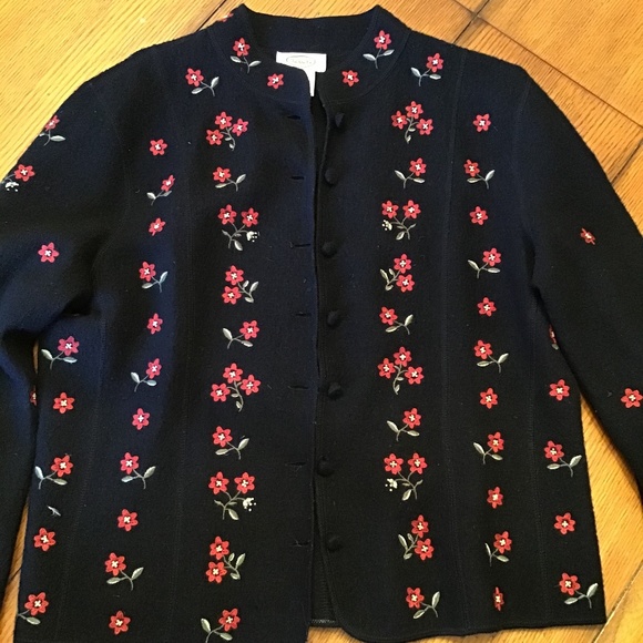 Black with red flowers. Boiled wool.